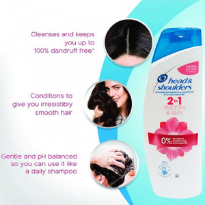 Head & Shoulders 2 In 1 Smooth & Silky Shampoo & Conditioner 450ml This shampoo controls your frizz to give you beautiful smooth and shiny hair. Derma & Pure formula effectively fights Itchy Oily and Dry scalp to Stop dandruff before it even shows. DerDescription