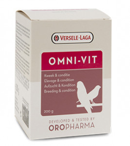 Versele Laga Omni Vit - 200 gm Brand: Versele-Laga Product: Omni-Vit Weight: 200 gm A fast working vitamin boost Very effective against reduced resistance due to weakening or stress Promotes general condition specially during the breeding season MaDescription